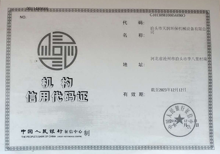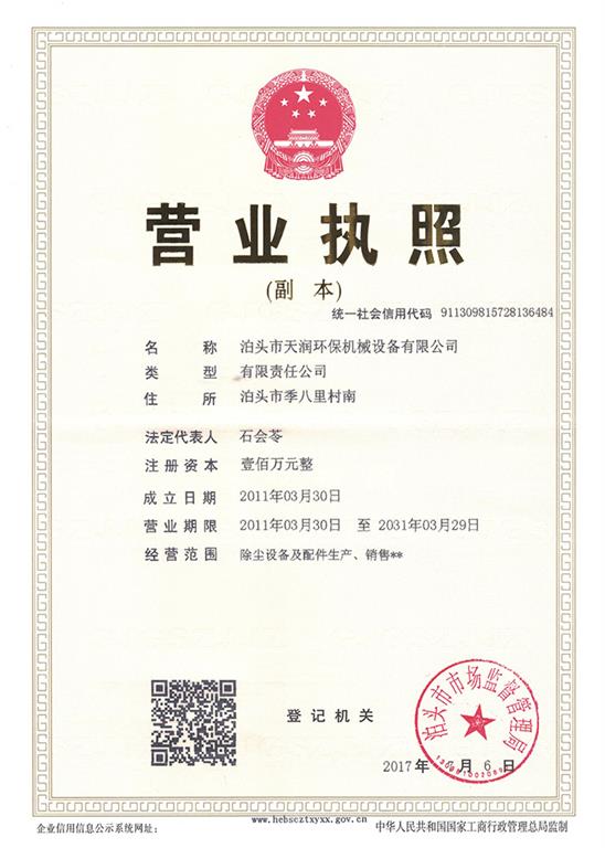 除塵器布袋骨架|除塵器濾袋-公司資質(zhì) -泊頭市天潤(rùn)環(huán)保機(jī)械設(shè)備有限公司